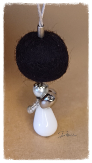 2 – 6 Tropfen von einem ätherischen Öl auf die Filzkugeln oder direkt auf das Duftklupperl tröpfeln.