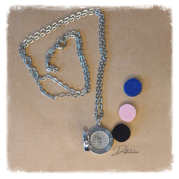 Nimm einen farbigen Filzpad mit der Wunschfarbe, tropfe 2-3 Tropfen des gewünschten Duftes oder des Duftöles auf den Filz, öffne den Anhänger und leg den Filz in den Anhänger.