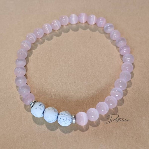 Das AROMA - ARMBAND *Katzenauge rosa* mit Lavasteinen und Halbedelsteinen ist bestens geeignet, um Deinen Lieblingsduft über einen längeren Zeitraum zu tragen!